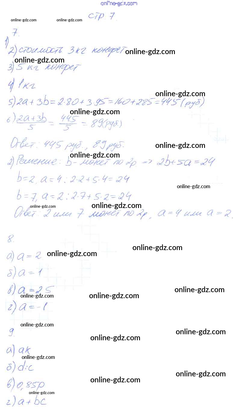 Готовые домашние задания по Алгебре за 7 класс Рабочая тетрадь Ключникова, Комиссарова УМК 2013 - Страницы 7