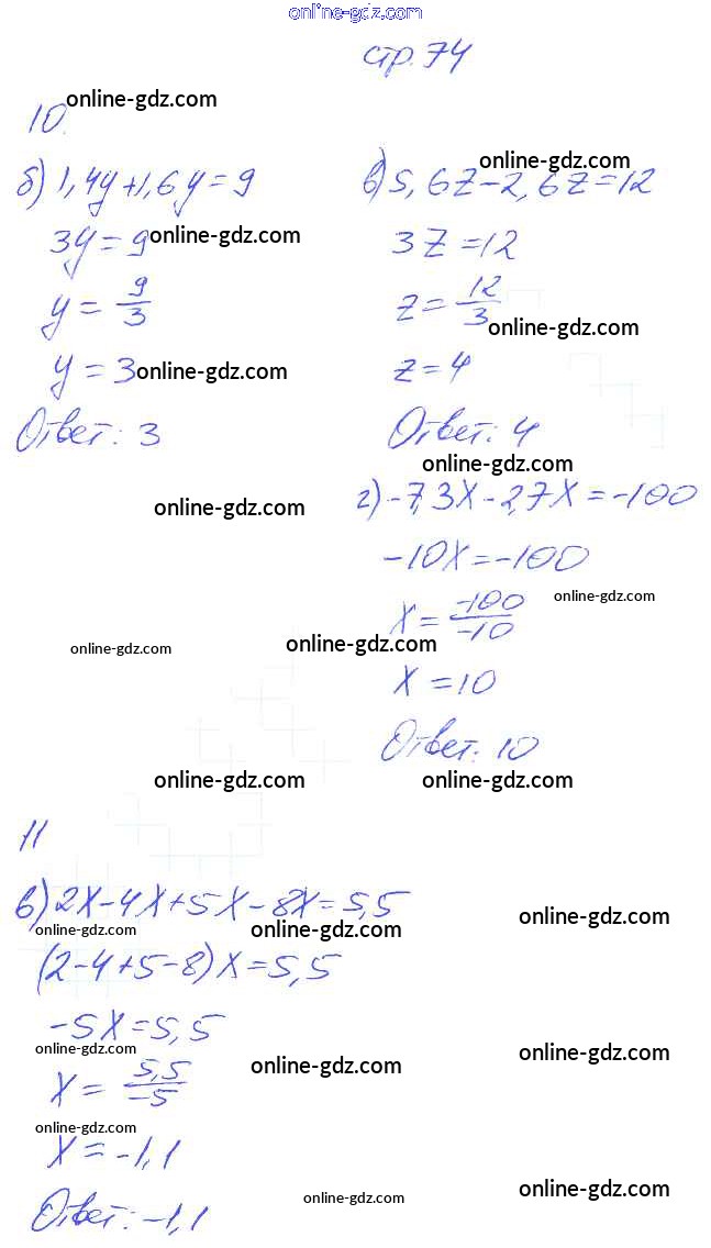 Готовые домашние задания по Алгебре за 7 класс Рабочая тетрадь Ключникова, Комиссарова УМК 2013 - Страницы 74