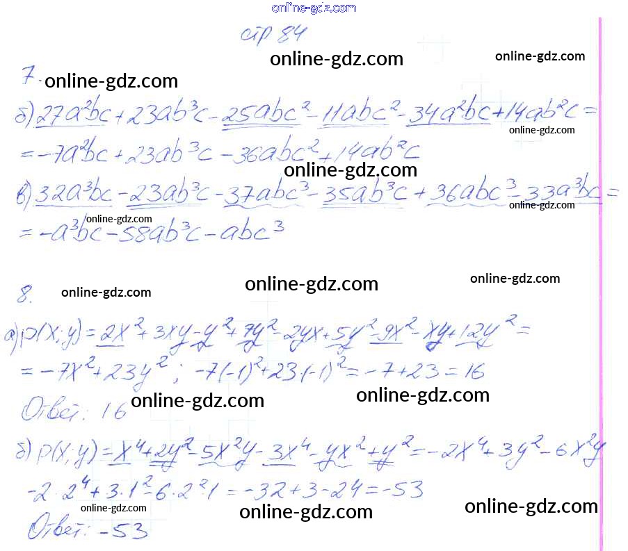 Готовые домашние задания по Алгебре за 7 класс Рабочая тетрадь Ключникова, Комиссарова УМК 2013 - Страницы 84