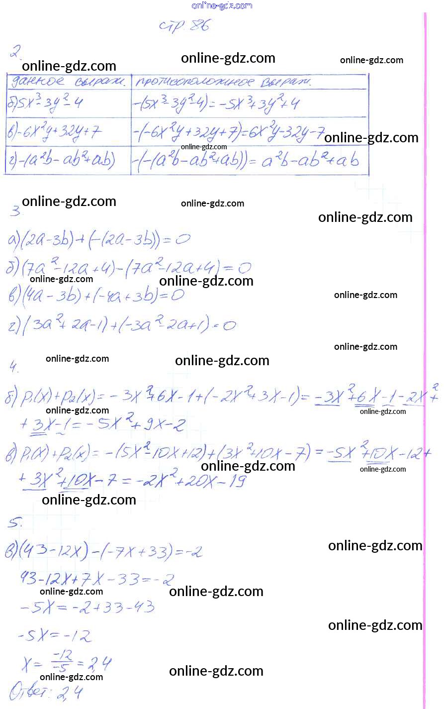 Готовые домашние задания по Алгебре за 7 класс Рабочая тетрадь Ключникова, Комиссарова УМК 2013 - Страницы 86
