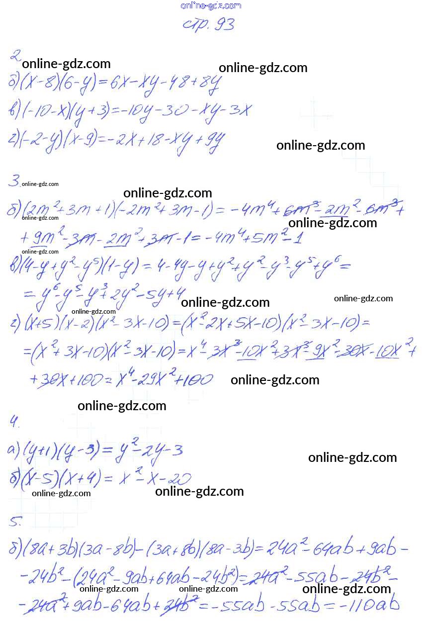 Готовые домашние задания по Алгебре за 7 класс Рабочая тетрадь Ключникова, Комиссарова УМК 2013 - Страницы 93