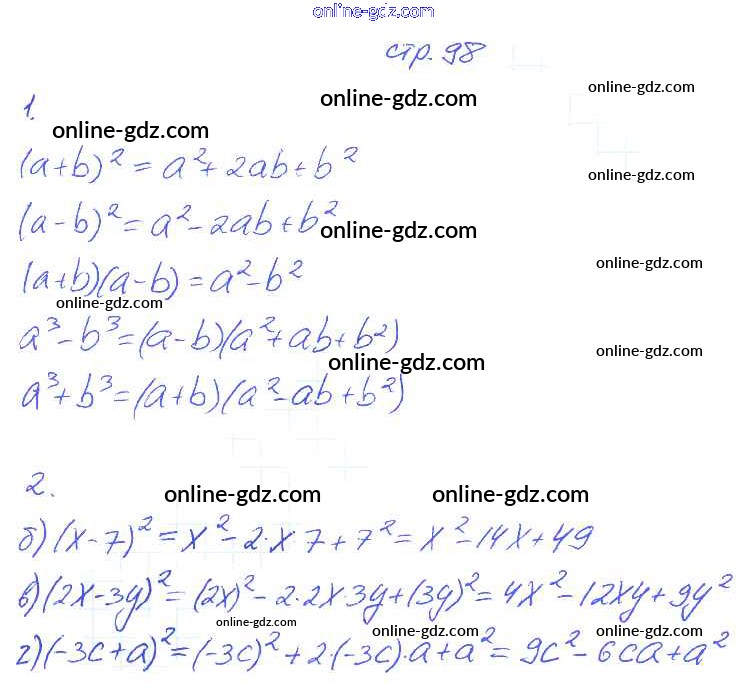 Готовые домашние задания по Алгебре за 7 класс Рабочая тетрадь Ключникова, Комиссарова УМК 2013 - Страницы 98