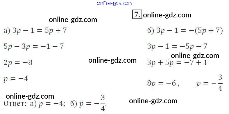 Готовые домашние задания по Алгебре за 7 класс Рабочая тетрадь Миндюк, Шлыкова УМК 2017 - §7. Линейное уравнение с одной переменной 7