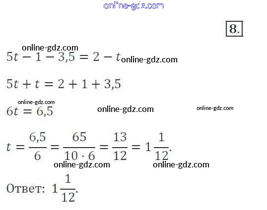 Готовые домашние задания по Алгебре за 7 класс Рабочая тетрадь Миндюк, Шлыкова УМК 2017 - §7. Линейное уравнение с одной переменной 8