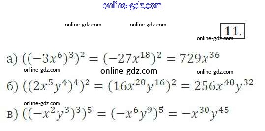 Готовые домашние задания по Алгебре за 7 класс Рабочая тетрадь Миндюк, Шлыкова УМК 2017 - §18. Возведение в степень произведения 11