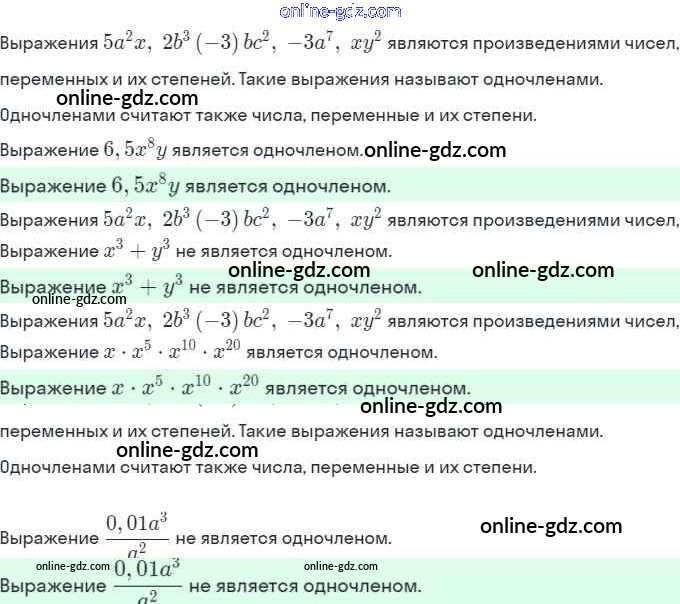 Готовые домашние задания по Алгебре за 7 класс Рабочая тетрадь Миндюк, Шлыкова УМК 2017 - §19. Одночлен и его стандартный вид 1