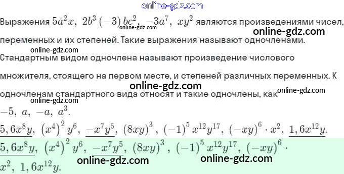 Готовые домашние задания по Алгебре за 7 класс Рабочая тетрадь Миндюк, Шлыкова УМК 2017 - §19. Одночлен и его стандартный вид 2