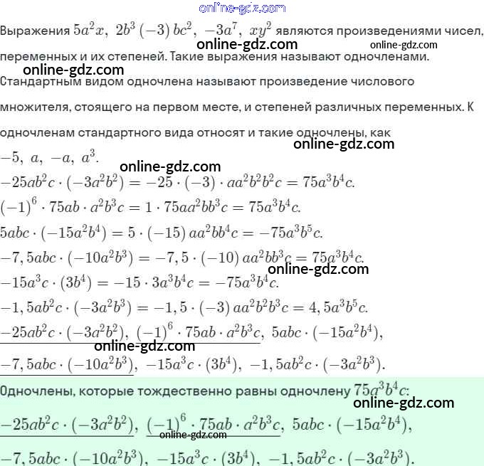 Готовые домашние задания по Алгебре за 7 класс Рабочая тетрадь Миндюк, Шлыкова УМК 2017 - §19. Одночлен и его стандартный вид 8