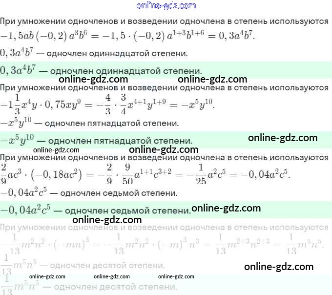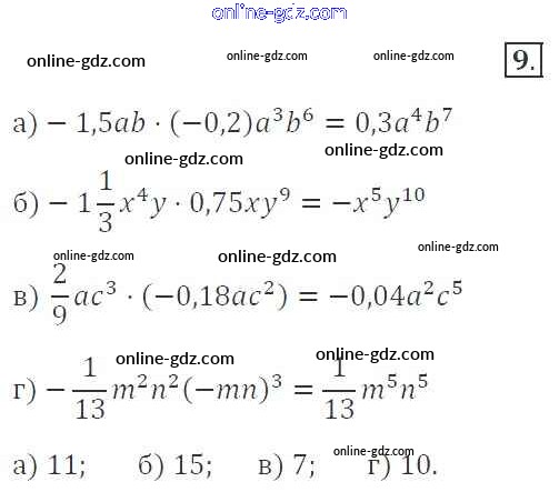Готовые домашние задания по Алгебре за 7 класс Рабочая тетрадь Миндюк, Шлыкова УМК 2017 - §20. Умножение одночленов. Возведение одночлена в степень 9