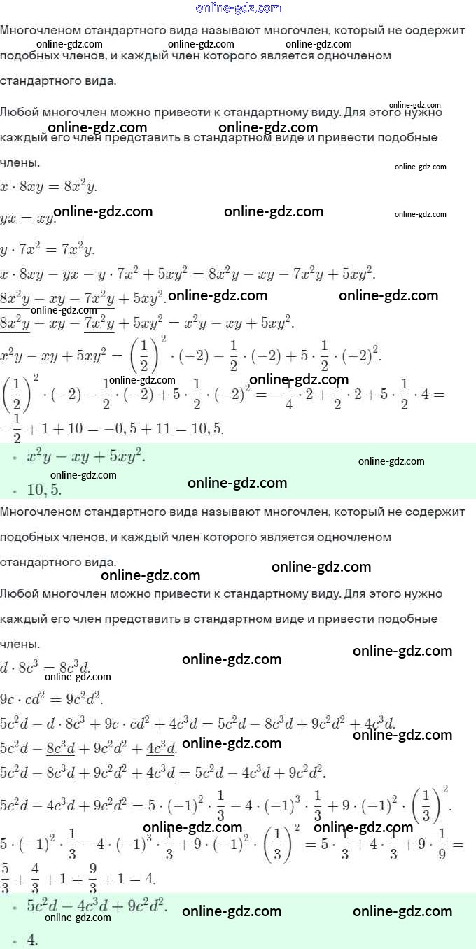 Готовые домашние задания по Алгебре за 7 класс Рабочая тетрадь Миндюк, Шлыкова УМК 2017 - §22. Многочлен и его стандартный вид 17