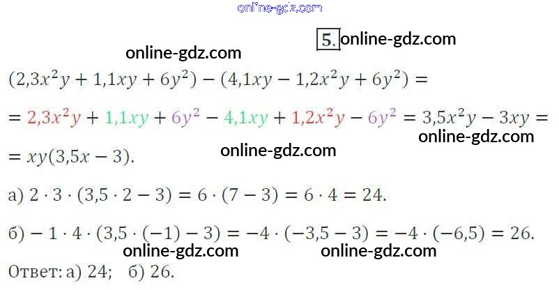 Готовые домашние задания по Алгебре за 7 класс Рабочая тетрадь Миндюк, Шлыкова УМК 2017 - §23. Сложение и вычитание многочленов 5