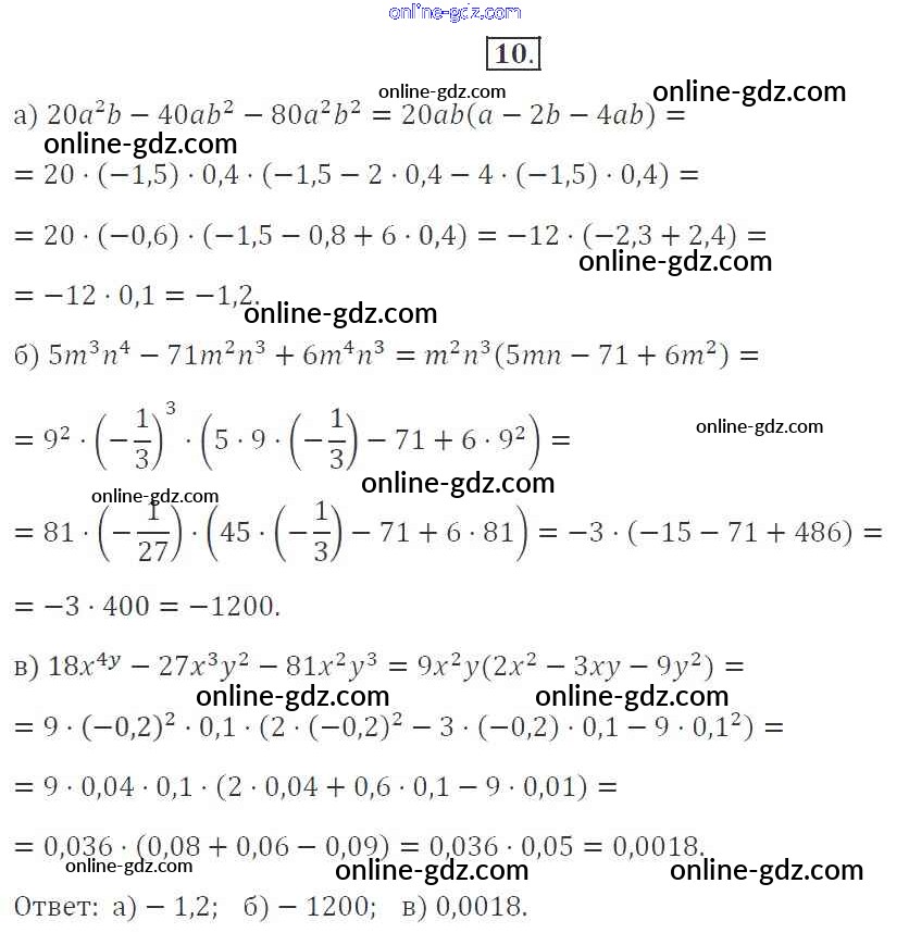 Готовые домашние задания по Алгебре за 7 класс Рабочая тетрадь Миндюк, Шлыкова УМК 2017 - §25. Вынесение общего множителя за скобки 10