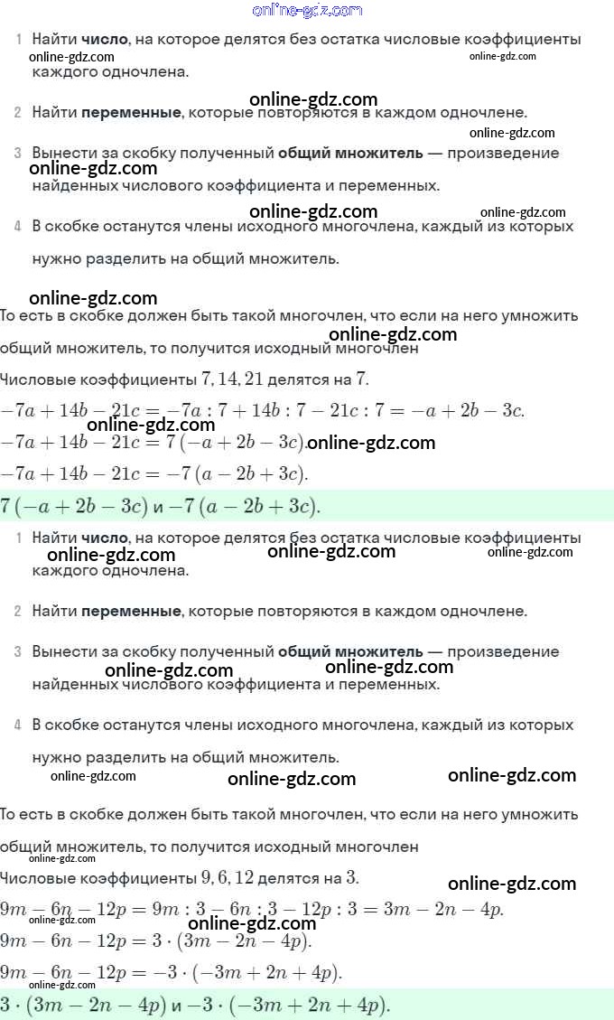 Готовые домашние задания по Алгебре за 7 класс Рабочая тетрадь Миндюк, Шлыкова УМК 2017 - §25. Вынесение общего множителя за скобки 2
