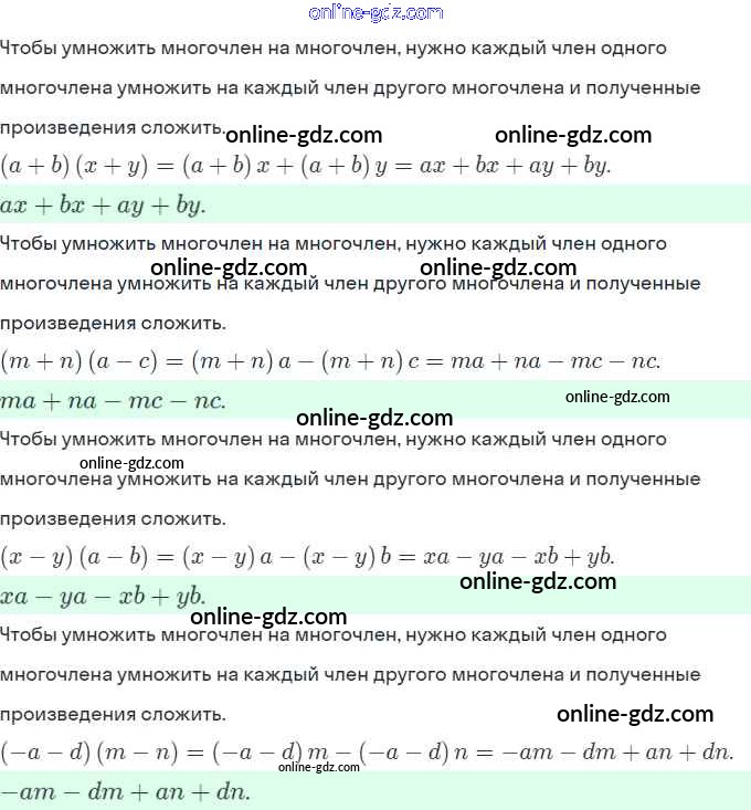 Готовые домашние задания по Алгебре за 7 класс Рабочая тетрадь Миндюк, Шлыкова УМК 2017 - §26. Умножение многочлена на многочлен 1