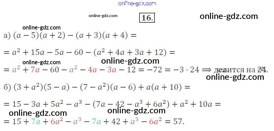 Готовые домашние задания по Алгебре за 7 класс Рабочая тетрадь Миндюк, Шлыкова УМК 2017 - §26. Умножение многочлена на многочлен 16