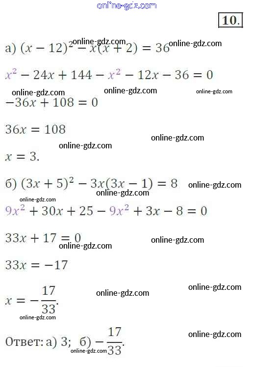 Готовые домашние задания по Алгебре за 7 класс Рабочая тетрадь Миндюк, Шлыкова УМК 2017 - §28. Возведение в квадрат и в куб суммы и разности двух выражений 10