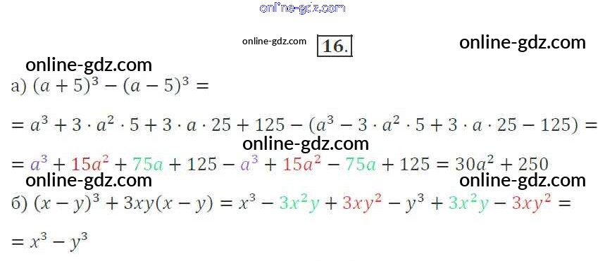 Готовые домашние задания по Алгебре за 7 класс Рабочая тетрадь Миндюк, Шлыкова УМК 2017 - §28. Возведение в квадрат и в куб суммы и разности двух выражений 16