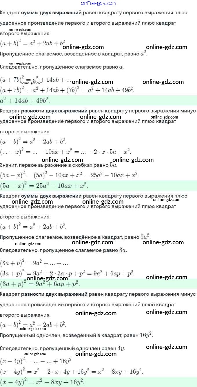 Готовые домашние задания по Алгебре за 7 класс Рабочая тетрадь Миндюк, Шлыкова УМК 2017 - §28. Возведение в квадрат и в куб суммы и разности двух выражений 9