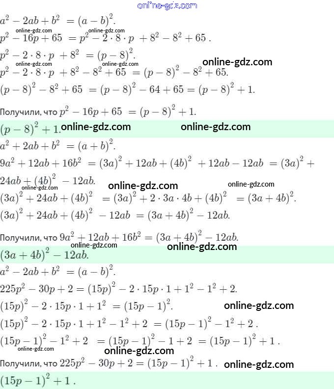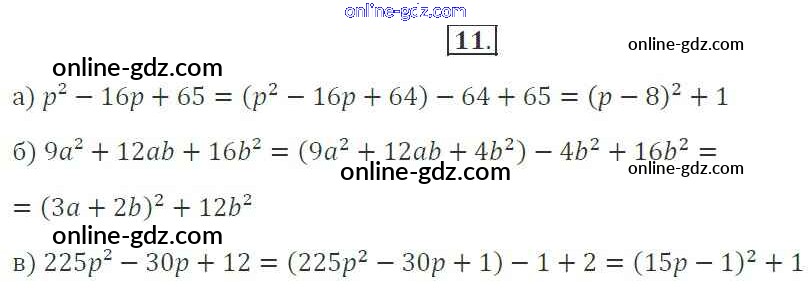 Готовые домашние задания по Алгебре за 7 класс Рабочая тетрадь Миндюк, Шлыкова УМК 2017 - §29. Разложение на множители с помощью формул квадрата суммы и квадрата разности 11