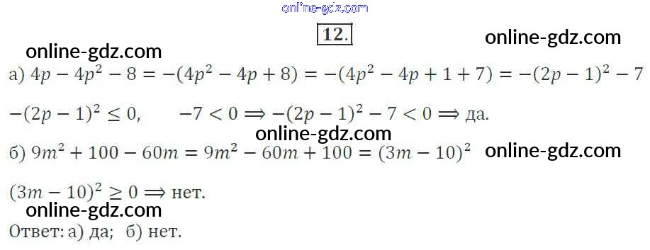 Готовые домашние задания по Алгебре за 7 класс Рабочая тетрадь Миндюк, Шлыкова УМК 2017 - §29. Разложение на множители с помощью формул квадрата суммы и квадрата разности 12