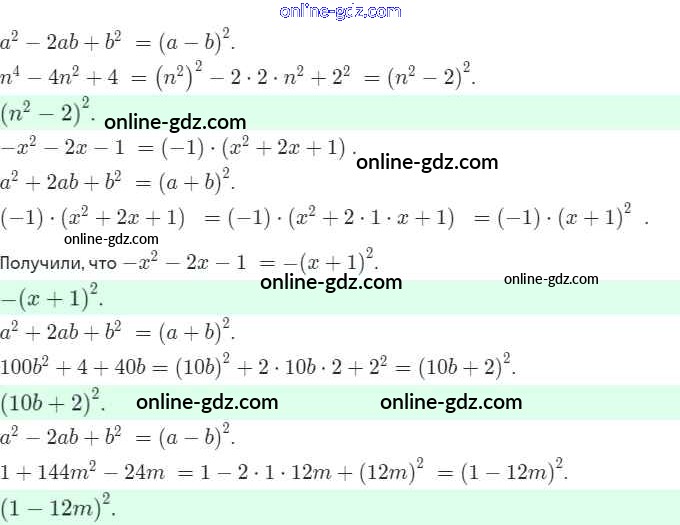 Готовые домашние задания по Алгебре за 7 класс Рабочая тетрадь Миндюк, Шлыкова УМК 2017 - §29. Разложение на множители с помощью формул квадрата суммы и квадрата разности 5