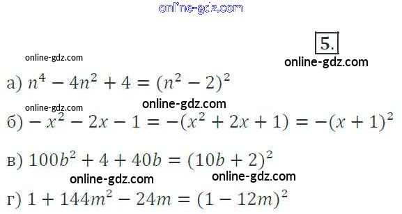 класс, от простых до сложных. Мы стремимся предоставить нашим пользователям максимально точные и полезные ответы к Рабочей тетради Миндюк, Шлыкова УМК - §29. Разложение на множители с помощью формул квадрата суммы и квадрата разности 5, поэтому мы постоянно работаем над улучшением нашего контента. Мы всегда готовы помочь!