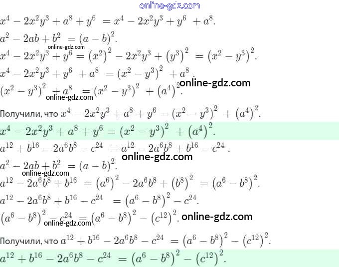 Готовые домашние задания по Алгебре за 7 класс Рабочая тетрадь Миндюк, Шлыкова УМК 2017 - §29. Разложение на множители с помощью формул квадрата суммы и квадрата разности 9