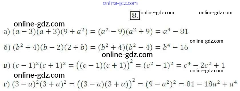 Готовые домашние задания по Алгебре за 7 класс Рабочая тетрадь Миндюк, Шлыкова УМК 2017 - §30. Умножение разности двух выражений на их сумму 8