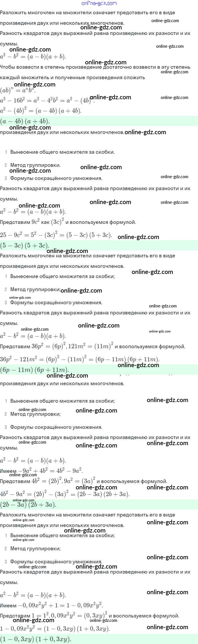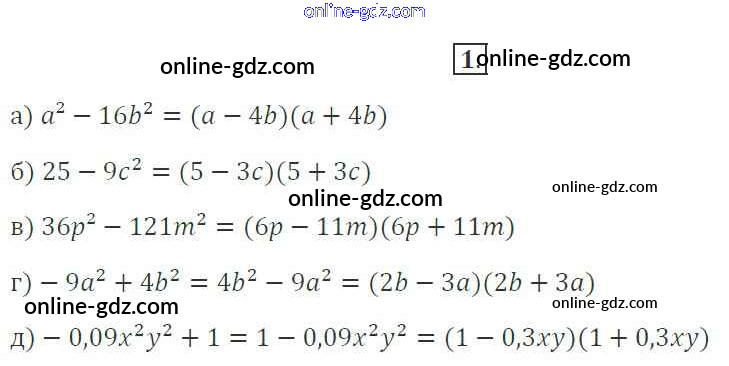 Готовые домашние задания по Алгебре за 7 класс Рабочая тетрадь Миндюк, Шлыкова УМК 2017 - §31. Разложение разности квадратов на множители 1