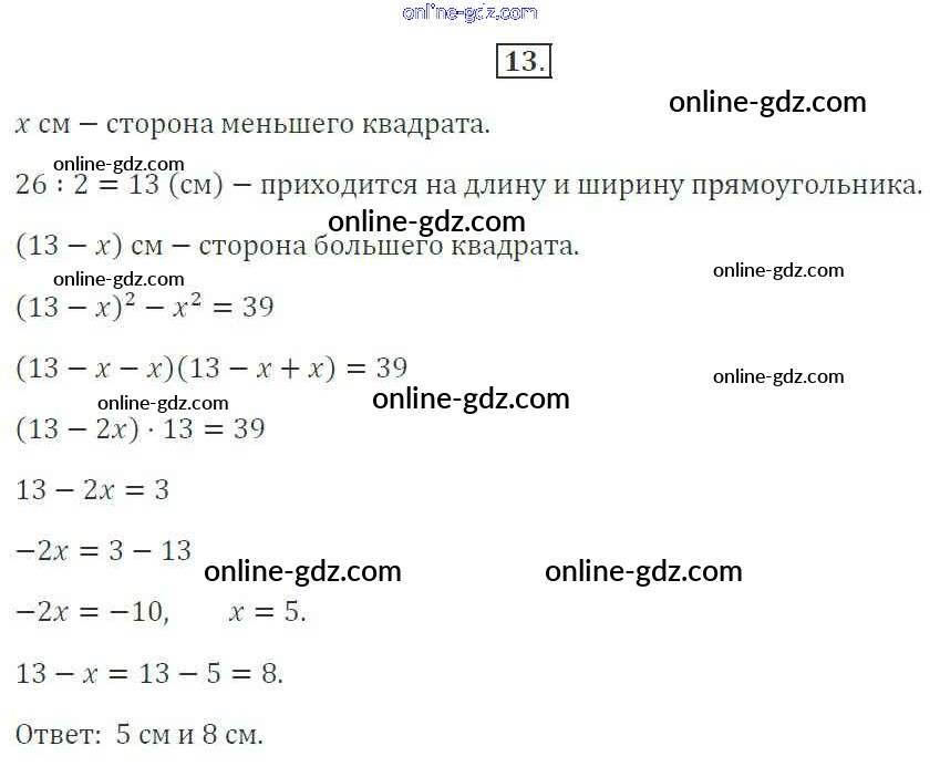 Готовые домашние задания по Алгебре за 7 класс Рабочая тетрадь Миндюк, Шлыкова УМК 2017 - §31. Разложение разности квадратов на множители 13