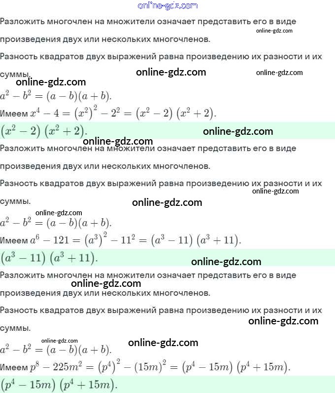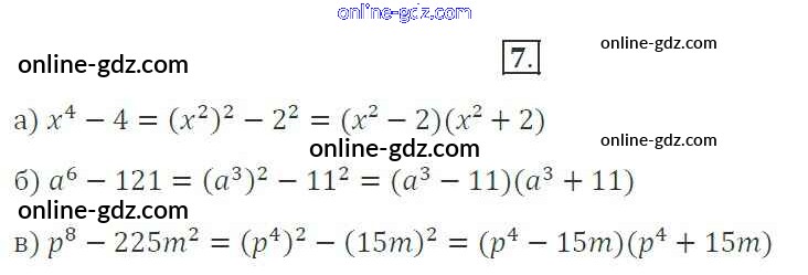 Готовые домашние задания по Алгебре за 7 класс Рабочая тетрадь Миндюк, Шлыкова УМК 2017 - §31. Разложение разности квадратов на множители 7