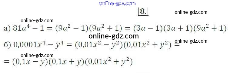 Готовые домашние задания по Алгебре за 7 класс Рабочая тетрадь Миндюк, Шлыкова УМК 2017 - §31. Разложение разности квадратов на множители 8
