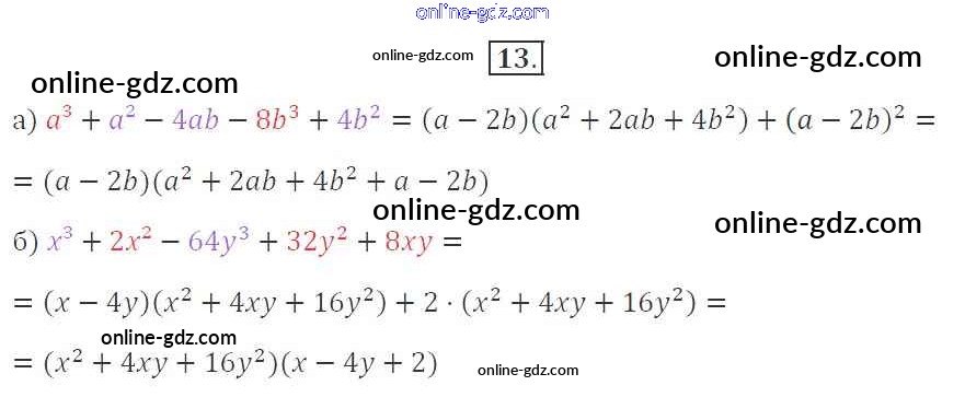 Готовые домашние задания по Алгебре за 7 класс Рабочая тетрадь Миндюк, Шлыкова УМК 2017 - §32. Разложение на множители суммы и разности кубов 13