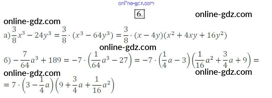 Готовые домашние задания по Алгебре за 7 класс Рабочая тетрадь Миндюк, Шлыкова УМК 2017 - §32. Разложение на множители суммы и разности кубов 6