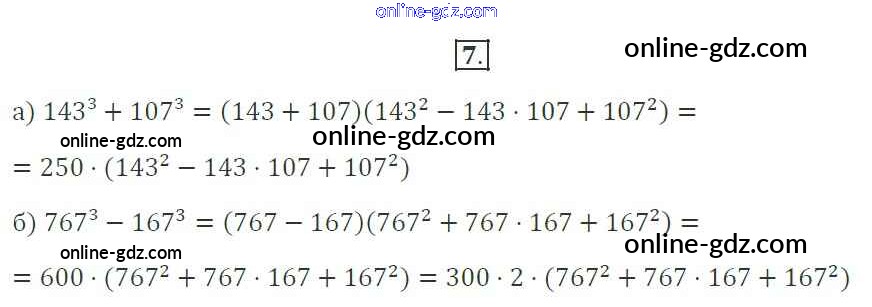 Готовые домашние задания по Алгебре за 7 класс Рабочая тетрадь Миндюк, Шлыкова УМК 2017 - §32. Разложение на множители суммы и разности кубов 7