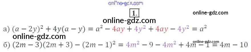 Готовые домашние задания по Алгебре за 7 класс Рабочая тетрадь Миндюк, Шлыкова УМК 2017 - §33. Преобразование целого выражения в многочлен 1