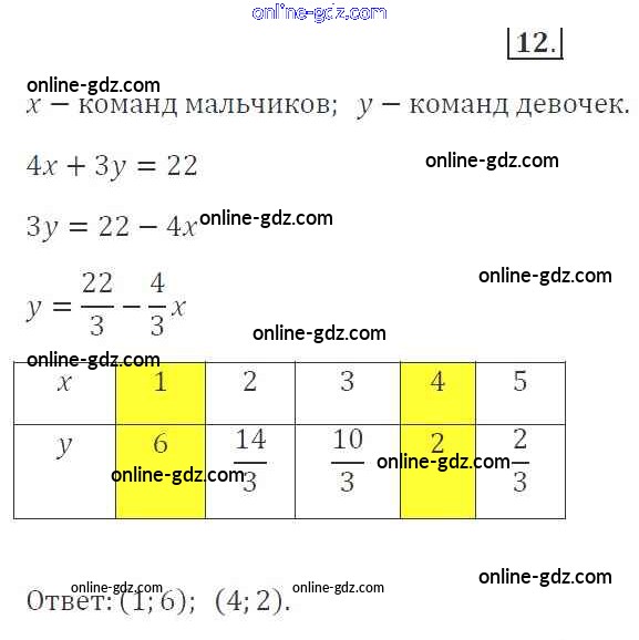 Готовые домашние задания по Алгебре за 7 класс Рабочая тетрадь Миндюк, Шлыкова УМК 2017 - §35. Линейное уравнение с двумя переменными 12