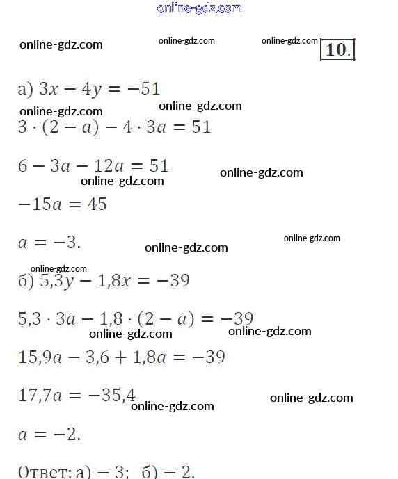 Готовые домашние задания по Алгебре за 7 класс Рабочая тетрадь Миндюк, Шлыкова УМК 2017 - §36. График линейного уравнения с двумя переменными 10