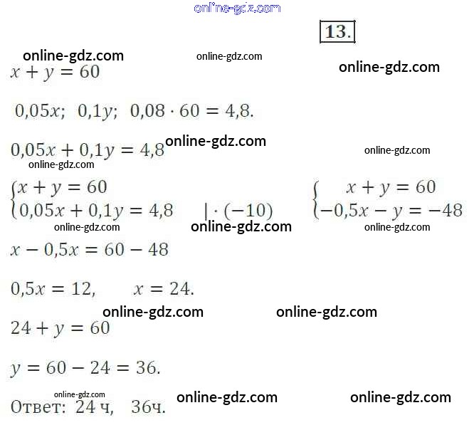 Готовые домашние задания по Алгебре за 7 класс Рабочая тетрадь Миндюк, Шлыкова УМК 2017 - §40. Решение задач с помощью систем уравнений 13