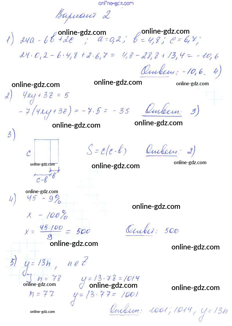 Готовые домашние задания по Алгебре за 7 класс Самостоятельные и контрольные работы Глазков, Гаиашвили УМК 2019 - СР-1 (варианты) Самостоятельные работы вариант 2