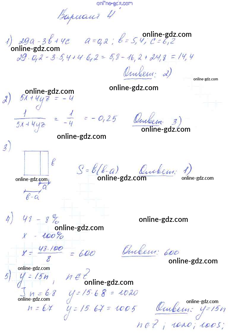 Готовые домашние задания по Алгебре за 7 класс Самостоятельные и контрольные работы Глазков, Гаиашвили УМК 2019 - СР-1 (варианты) Самостоятельные работы вариант 4