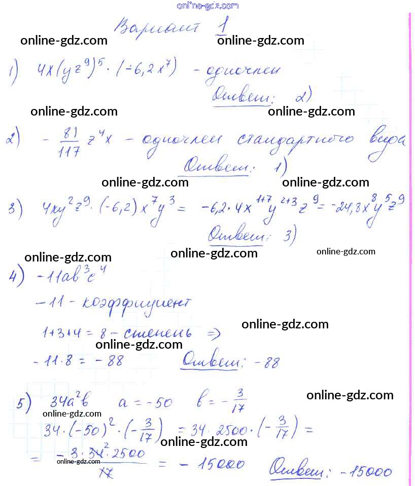 Готовые домашние задания по Алгебре за 7 класс Самостоятельные и контрольные работы Глазков, Гаиашвили УМК 2019 - СР-14 Самостоятельные работы вариант 1