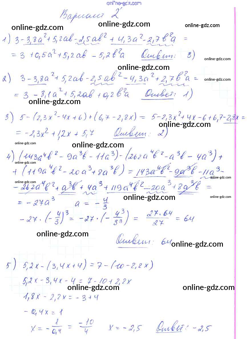 Готовые домашние задания по Алгебре за 7 класс Самостоятельные и контрольные работы Глазков, Гаиашвили УМК 2019 - СР-18 Самостоятельные работы вариант 2