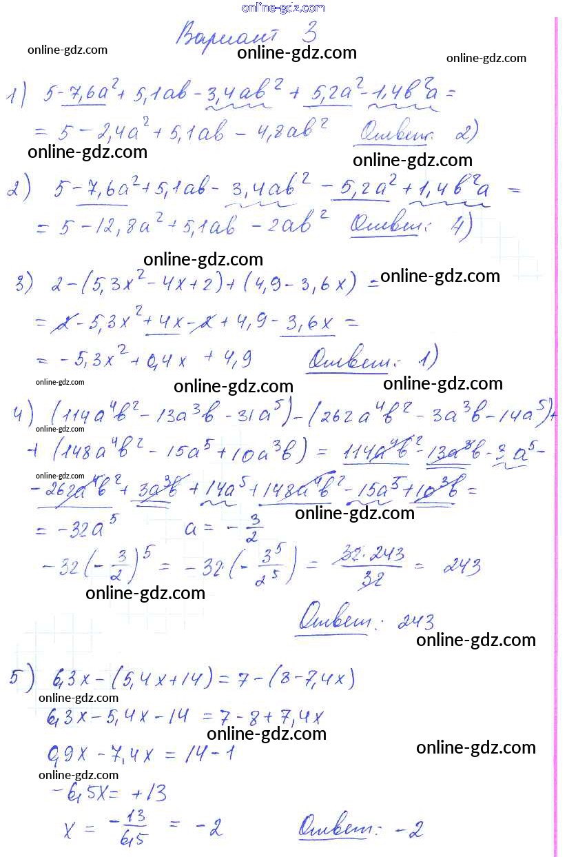 Готовые домашние задания по Алгебре за 7 класс Самостоятельные и контрольные работы Глазков, Гаиашвили УМК 2019 - СР-18 Самостоятельные работы вариант 3
