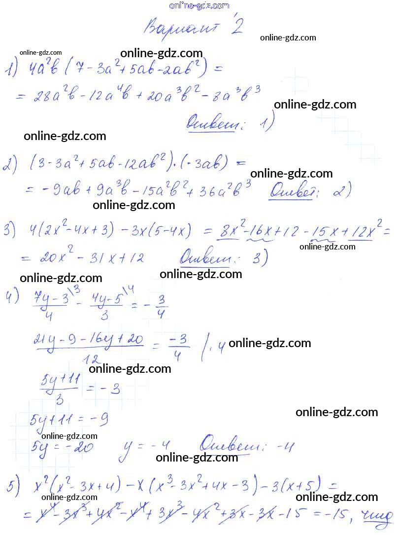 Готовые домашние задания по Алгебре за 7 класс Самостоятельные и контрольные работы Глазков, Гаиашвили УМК 2019 - СР-19 Самостоятельные работы вариант 2
