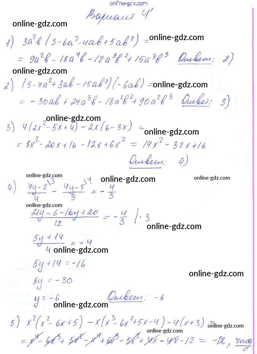 Готовые домашние задания по Алгебре за 7 класс Самостоятельные и контрольные работы Глазков, Гаиашвили УМК 2019 - СР-19 Самостоятельные работы вариант 4