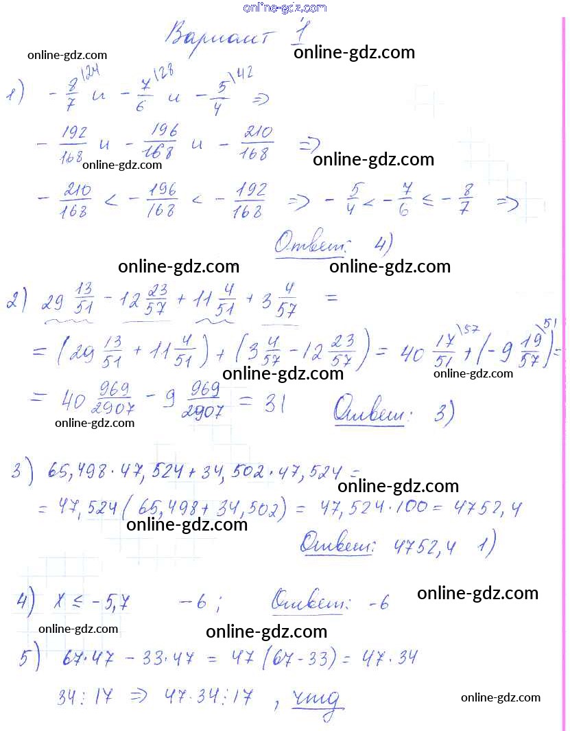 Готовые домашние задания по Алгебре за 7 класс Самостоятельные и контрольные работы Глазков, Гаиашвили УМК 2019 - СР-2 Самостоятельные работы вариант 1