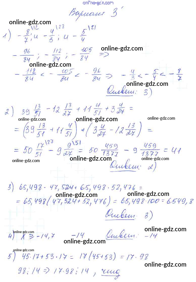Готовые домашние задания по Алгебре за 7 класс Самостоятельные и контрольные работы Глазков, Гаиашвили УМК 2019 - СР-2 Самостоятельные работы вариант 3