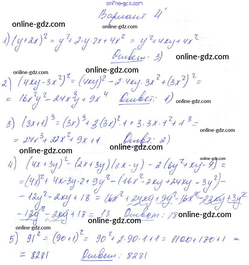Готовые домашние задания по Алгебре за 7 класс Самостоятельные и контрольные работы Глазков, Гаиашвили УМК 2019 - СР-23 Самостоятельные работы вариант 4