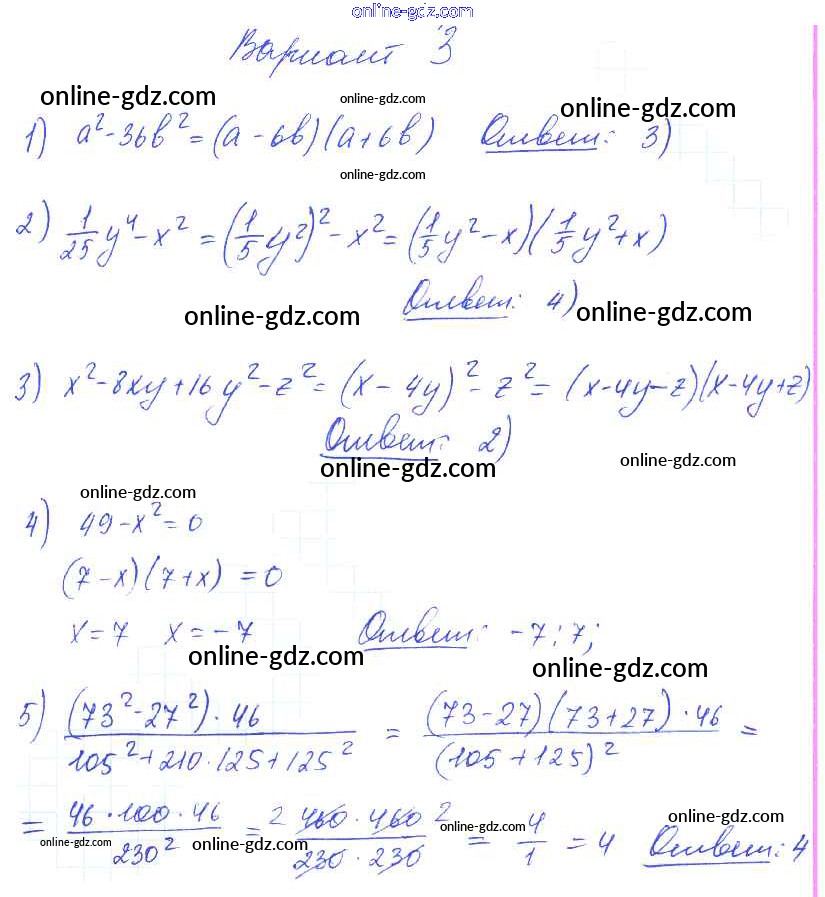 Готовые домашние задания по Алгебре за 7 класс Самостоятельные и контрольные работы Глазков, Гаиашвили УМК 2019 - СР-25 Самостоятельные работы вариант 3